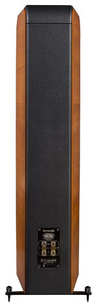 Корпус колонки выполнен из MDF толщиной 30 мм, имеет глубокое внутреннее демпфирование, а также специальные перегородки, увеличивающие его акустическую инертность. Углы фронтальной панели для лучшей звуковой дисперсии скруглены, как и на модели Malibran, а сама она покрыта высококачественной кожей. Боковые накладки отделаны шпоном натурального дерева. Для подключения АС Opera Seconda к усилителю на задней панели размещен блок разъемов с двумя парами позолоченных винтовых клемм.