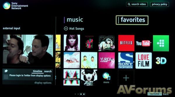 Sony усовершенствовала также доступ к онлайн сервисам и новый интерфейс SEN значительно удобнее, в сравнении с предыдущим способом доступа к сетевому контенту. Как всегда, есть большой выбор видеосервисов по запросу, а также веб-браузер и собственные музыкальный и видео сервисы Sony Unlimited. Мы считаем, было бы удобнее добавить доступ к Skype, видеозаписи и воспроизведению потокового видео из интерфейса SEN.
