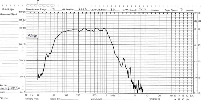 На графике осевой АЧХ, самописец при снятии был установлен с небольшим смещением влево. Зелёная линия – АЧХ под углом 15º. Толстая линия, вдоль которой проходит график, соответствует 90 дБ, то есть чувствительность составляет 90-91 дБ. Второе изображение - характеристика НЧ динамика с кроссовером, там стоит отметка 84 дБ стоит. Из графиков видно, что SmartHorn не имеет каких-либо значимых «завалов», все характеристики соответствуют заявленным. В конструкции есть еще одна "изюминка". Хромированные стойки служат фазоинвертором, их длина и количество точно расчитано. Выход фазоинвертора вблизи пола повышает его эффективность и скромные полочники "басят" как настоящие напольники. Подьем басов наблюдается, естественно, только в комнате. В заглушенной камере АЧХ прежняя.