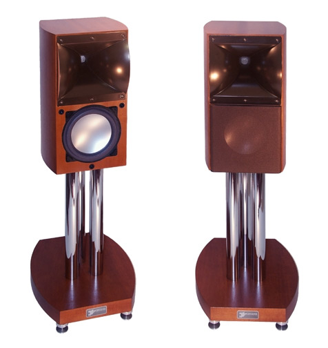 Сегодня на наш испытательный стенд попала акустика SmartHorn российской компании Crystalvox. В прошлый раз мы слушали Mistral, а теперь старательно изучаем её младшего брата. Эти небольшие колонки (без стоек 49х26х33 см), весом всего 17 кг (хотя, может, для небольших колонок 17 кг – это совсем не «всего»). Обычно такого размера мониторы весят раза в 1,5 меньше. В «другую весовую категорию» SmartHorn перешли, благодаря большой толщине стенок - 32 мм - и общей массе магнитов, превышающей среднестатистическую как минимум в 3 раза. Колонки изначально комплектуются специальными стойками, состоящими из трёх столбиков (см. фото). Дизайн интересный, лично мне показался «готичным». Максимальная мощность 100Вт, что конечно не много, но, учитывая заявленную чувствительность в 91 дБ, этого вполне достаточно для создания громкого звука в комнате до 30м². Кстати, замеры в акустической камере показали чувствительность порядка 91 дБ, а комплексом MLSSA 91,4дБ.