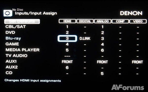 Шесть основных разделов меню позволяют установить и изменить ваши настройки после завершения первоначальной процедуры с помощью Setup Assistant. Эти шесть разделов меню включают: Аудио, Видеo, Входы, Колонки, Сеть и Общее. Разделы Аудио и Видео рассмотрим в конце обзора. Раздел Входы позволяет назначать входы, переименовать источники, как показано на дисплее, скрывать источники, которые вы не используете, настроить уровень воспроизведения отдельных источников и объединить видео с одного источника со звуком с другого.