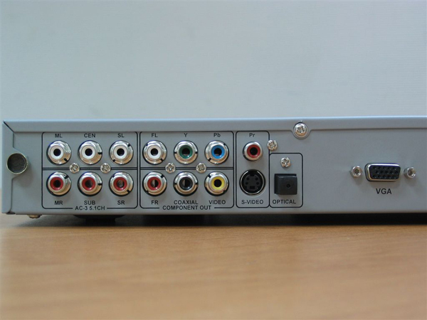Потребительские свойства. ПДУ удобен и практичен. В комплекте прилагаются батарейки HORIZONT. Плеер имеет множество разъёмов. Полный комплект аналоговых аудиовыходов системы 5.1, коаксиальный и оптический цифровые выходы. Видео можно передавать через S-video, композитный и компонентный выходы. Также есть и компьютерный VGA разъём, через который плеер можно подключить к обычному монитору.