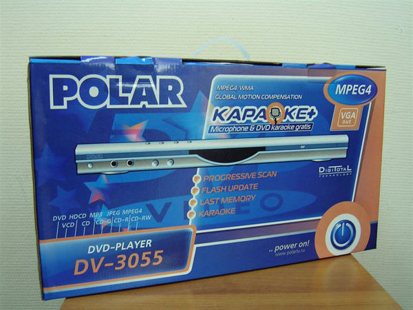 Polar DV-3055 с первого взгляда производит приятное впечатление. Очень интересный дизайн, внешность с изюминкой. Разочаровало только качество изготовления пульта ДУ, он портит общее приятное впечатление. Поддержка всех необходимых на сегодня форматов, за исключением XviD, но опять же можно надеяться на производителя или на энтузиастов, которые выпустят новую версию прошивки и исправят все недочёты.