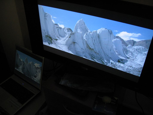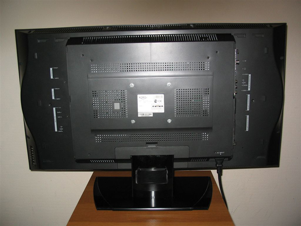 Дизайн. С первого взгляда черный прямоугольник телевизора вызывает такие же впечатление, как монументальный Монолит из «Одиссеи 2010 года». Великолепный, строгий дизайн усиливается тем, что границу между черным экраном и черным блестящим корпусом обнаружить не удается, а при появлении картинки черный контур только прибавляет яркости и контраста изображению. Корпус имеет крайне малую глубину, для чего даже панели коннектов выполнены по бокам, а это означает, что штекера разъёмов не торчат из корпуса, увеличивая глубину. При 27-дюймовом экране телевизор занимает минимально возможное пространство в комнате и весит всего 19 кг. Есть возможность крепления телевизора на стену.