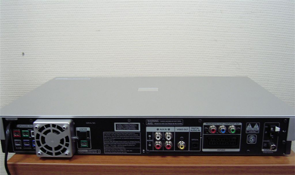 В левой части задней панели расположен активный кулер, то есть вентилятор небольшого размера. Это означает дополнительный шум, хоть и тихий. Вокруг него размещены разъёмы для подключения акустики. Ближе к правой части находятся 2 аналоговых стерео-входа, оптический вход, видеовыход SCART, композитный и компонентный интерфейсы, разъёмы для подключения наушников и микрофона, а также антенные входы. На передней панели расположен USB разъём для подключения различных совместимых устройств. Такая универсальность, бесспорно, является плюсом модели: можно просматривать фотографии, видео и аудио записи напрямую с USB накопителей.